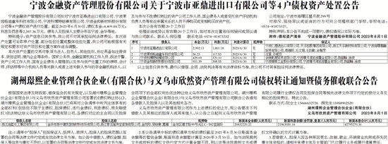 宁波金融资产管理股份有限公司关于宁波市亚鼎进出口有限公司等4户债权资产处置公告