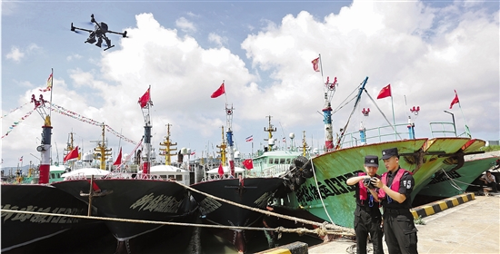 为积极应对台风“卡努”可能带来的影响,7月31日,岱山县公安局民警利用警用无人机对当地渔港进行空中巡查,加强治安管控力度,对各类避风船只进行安全提示。