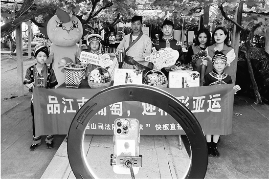 “夏黑巨峰醉金香,喜迎亚运圆梦想,阳光玫瑰红富士,法治同行保赛事……”快板声声入耳。近日,余姚市江南葡萄农庄里,开展了一场主题为“品江南葡萄,迎精彩亚运”的直播助农活动,临山镇普法志愿者、余姚市红盾社会工作服务中心社工以及余姚市普法使者“明明”纷纷化身主播为葡萄代言,向广大网友推介临山葡萄,同时普及法律知识。