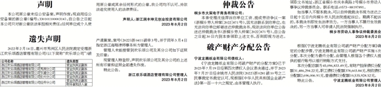 现管理人特登报,声明欢乐颂公司及其分公司的上述所有印章和证照全部遗失作废。