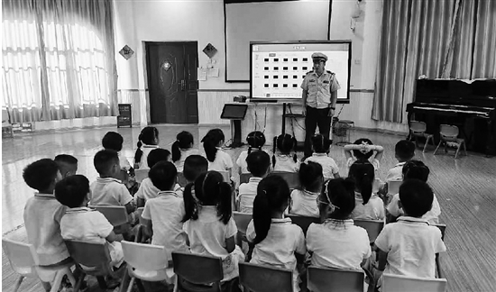 本报讯 “警察叔叔,我们记住了!走路要走斑马线,不能闯红灯;骑车要带头盔;开车要系安全带。”近日,诸暨交警大队店口中队走进托幼中心,开展“暑期小候鸟”交通安全主题宣传活动,现场气氛热烈。