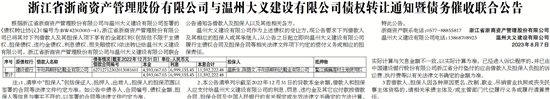 浙江省浙商资产管理股份有限公司与温州大义建设有限公司债权转让通知暨债务催收联合公告