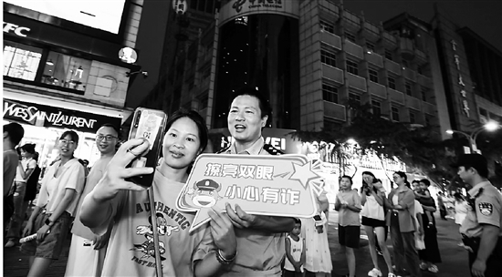 近日,金华市公安局婺城分局城中派出所以夏夜治安巡查宣防行动为契机,在城中街道西市街商圈设立反诈摊位,民警客串摊主“叫卖”反诈知识,通过有奖竞答、娃娃机抓“反诈小熊”等互动游戏,引导群众增强反诈意识。