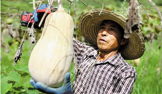 处暑时节,贵州省黔东南苗族侗族自治州施秉县城关镇建国村种植的400亩蜜本南瓜进入成熟采收期,村民们忙着采摘、挑选、搬运,呈现一派喜人的丰收景象。