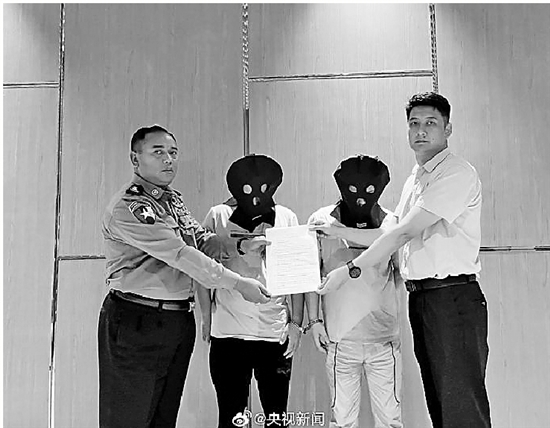 8月23日上午,两名电信诈骗犯罪嫌疑人在仰光国际机场由缅甸警方移交给中国警方工作组押解回国。