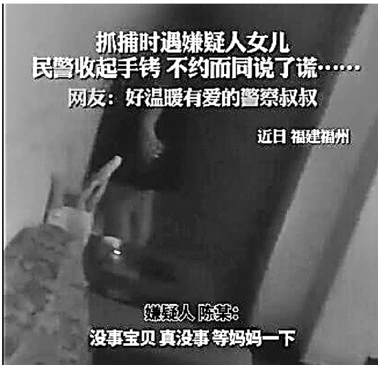 近日,福建福州,民警抓捕一名潜逃人员时,发现有孩子在场,于是收起手铐集体“说谎”:“叫你妈妈去做个证人。”还同意让潜逃人员安顿好孩子吃饭。