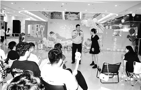 | 刚刚过去的七夕节,台州市椒江区总工会、洪家街道联合举办“心心相融 青定未来”交友活动。洪家派出所民警来到活动现场,重点围绕婚恋交友类、刷单返利类、冒充公检法类等诈骗,为在场的青年男女上了一堂反诈课。 通讯员 何文斌 摄 |