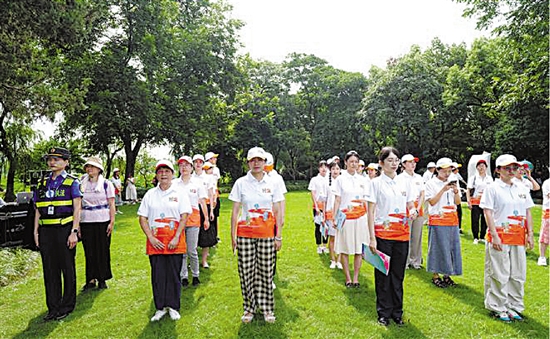 | 8月23日,杭州西湖景区的亚运城市志愿者集结宣誓。(受访者供图) |