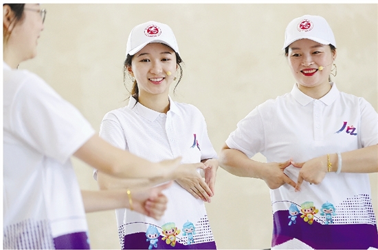 金华城市志愿者张晓琴说,除了优质便捷的城市志愿服务,他们还结合金华即将举办的藤球项目,在“青年V站”推出体验活动,推广介绍亚运会特色项目。“在城市中,我们同样准备好了。”