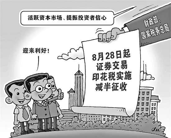 记者8月27日从财政部了解到,财政部、国家税务总局当日发布公告称,为活跃资本市场、提振投资者信心,自2023年8月28日起,证券交易印花税实施减半征收。