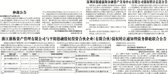 根据浙江浙栋资产管理有限公司与平阳德融股权投资合伙企业(有限合伙)签署的《债权转让协议》(编号BC1220304016-7,2023年8月30日签署),浙江浙栋资产管理有限公司已将其对下列借款人及其担保人项下享有的全部权利(包括但不限于主债权、担保债权、违约金债权、利息债权、损失赔偿权)依法转让给平阳德融股权投资合伙企业(有限合伙)。浙江浙栋资产管理有限公司与平阳德融股权投资合伙企业(有限合伙)联合公告通知各借款人及担保人以及其他相关各方。