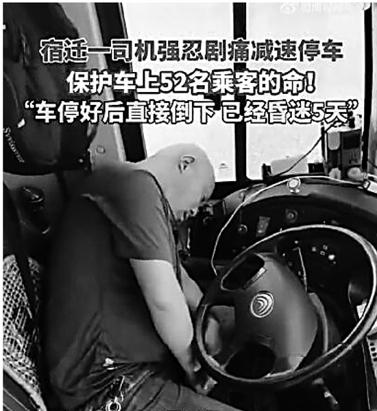 近日,江苏宿迁一客车驾驶员臧其松在驾车途中感到不适,他强忍剧痛,缓缓踩刹车减速停车,将车辆稳稳停靠在高速公路的应急车道内,随后倒在驾驶位上。目前,臧其松仍处于昏迷中。