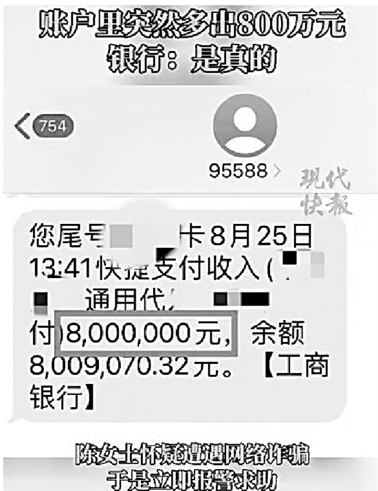 女子账户突然多出800万元吓得报警