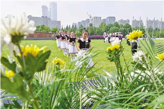 | 9月3日,青少年代表在侵华日军南京大屠杀遇难同胞纪念馆的中国人民抗日战争暨世界反法西斯战争胜利78周年纪念活动中敬献鲜花。 当日,侵华日军南京大屠杀遇难同胞纪念馆举行中国人民抗日战争暨世界反法西斯战争胜利78周年纪念活动。南京大屠杀幸存者后代代表、中国人民解放军官兵代表、青少年代表、紫金草志愿者代表和纪念馆馆员代表等通过敬献鲜花、诗歌朗诵、合唱等形式,铭记历史,缅怀先烈。 新华社 李博 摄 |