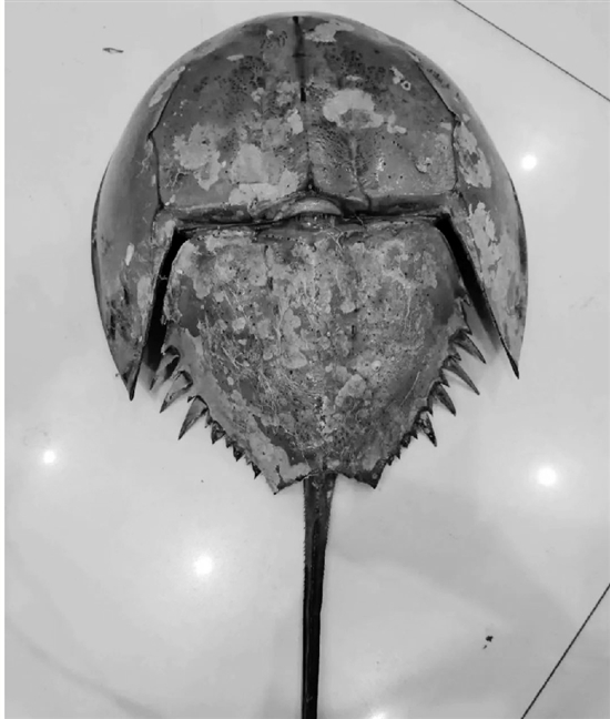 民警往盆内一看,这只甲壳类海洋动物头胸部甲壳略呈马蹄形,腹部呈六角形,两侧具有棘刺,尾部是一根尾剑,长度约50厘米,初步确定为中华鲎(读音为hòu)。据介绍,中华鲎是一种非常古老的海洋节肢动物,早在4.75亿年前的奥陶纪就已存在,有“海洋活化石”之称。中华鲎生长周期很长,需要近13年才能完成繁殖,鲎的血液因含有铜离子显示蓝色,被列为国家二级保护动物,分布于中国、印度尼西亚、日本、马来西亚、菲律宾和越南。