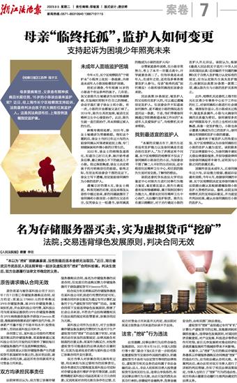 浙江法治报 案卷 00007 母亲“临终托孤”,监护人如何变更 2023-09-05 浙江法治报2023-09-0500007;26175307;26175312 2 2023年09月05日 星期二