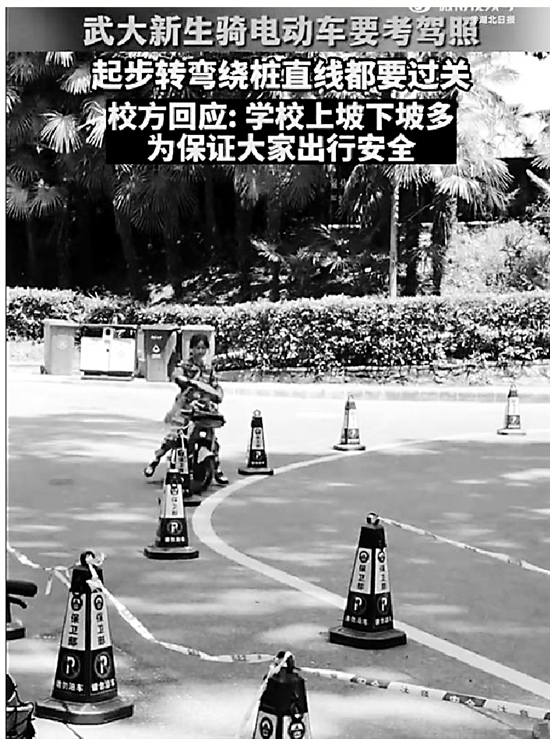 近日,多位武汉大学学生在网上晒出了大一新生穿着军训服,排队参加共享电动车考试的图片,引来网友关注。有媒体记者从武汉大学多名学生及相关部门获悉,这是目前该校针对新生开展的电动自行车骑行培训及交通安全宣传教育活动,原因是武汉大学校园上坡下坡较多,开展培训也是为了骑行安全。早在2022年8月,武汉大学就对7300多名新生进行了共享电动车安全骑行培训。