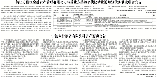 根据转让方浙江金越资产管理有限公司与受让方吴锦平签署的《债权转让协议》,浙江金越资产管理有限公司已将其对下列借款人及其担保人享有的债权项下全部权利(包括但不限于主债权、担保债权<保证和抵押担保>、违约金债权、利息债权、损失赔偿权)依法转让给吴锦平。浙江金越资产管理有限公司与吴锦平联合公告通知借款人及担保人以及其他相关各方。