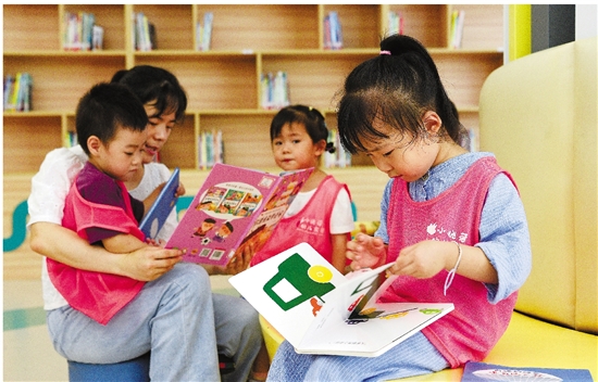 | 在陕西省图书馆高新馆区,一家幼儿园的老师带领孩子一起阅读绘本。 新华社 刘潇 摄 |