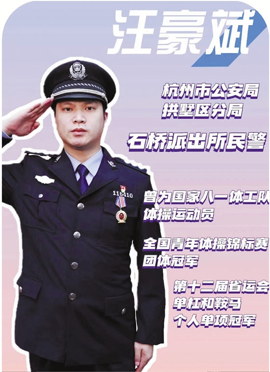 杭州市公安局拱墅区分局石桥派出所民警汪豪斌,曾经是一名全能竞技体操运动员。