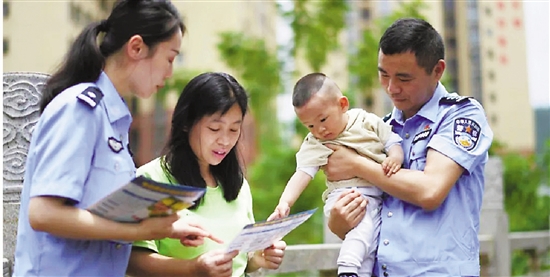 | 民警在社区向群众宣传反诈。 杨楹 摄 |