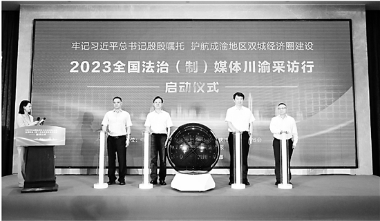 本报讯 巴山蜀水情,川渝一家亲。18日,由四川省委政法委、重庆市委政法委指导,四川法治报、重庆法治报联合主办的“2023全国法治(制)媒体川渝采访行”活动在成都正式拉开帷幕。中央驻川媒体、省内主流媒体和来自全国近30家法治(制)媒体的社长、总编辑和记者齐聚蓉城,将组成采访团深入川渝两地,用笔和镜头,采访挖掘法治护航成渝地区双城经济圈建设的生动实践和特色亮点。