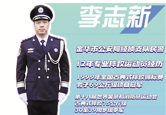 2005年底,恰逢十运会结束,李志新顺利通过浙江省公安厅的特招考试,成为金华市公安局的一名特警。