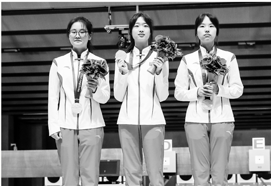 在当天11点45分开始的女子10米气步枪个人决赛中,三位小将都全力以赴向金牌发起冲击。最终,黄雨婷以252.7环的成绩获得冠军,韩佳予获得亚军,印度选手拉米塔获得季军。