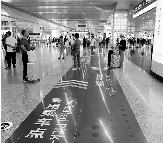 为应对即将到来的大流量,杭州东站实施了客运提质计划,比如更新检票口、出站口等处的标识标牌,设置中央通道鱼翅导向牌、落地导视灯箱等,连候车室内引导指示标志也变得更醒目统一。