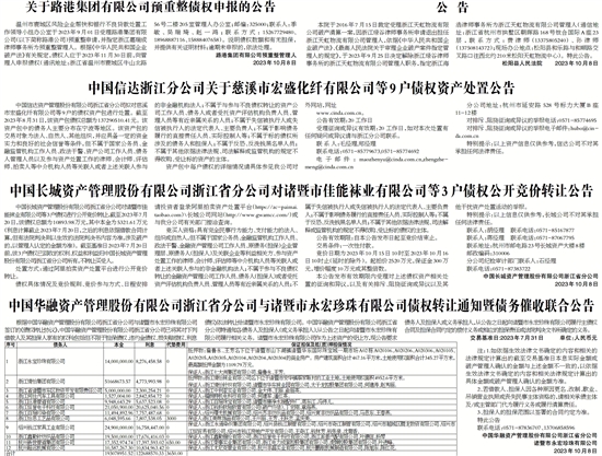 中国信达浙江分公司关于慈溪市宏盛化纤有限公司等9户债权资产处置公告