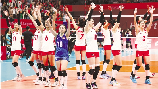 当日,在杭州亚运会女子排球决赛中,中国队以3比0战胜日本队,获得冠军。