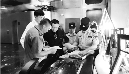 近日,台州市公安局椒江区分局府前派出所结合勤廉公安建设,组织警力对辖区KTV场所的禁毒、消防安全等方面进行突击夜查,排查消除安全隐患。图为民警在检查KTV场所的相关台账。