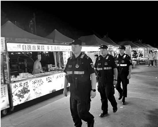 连日来,嘉兴秀洲区洪合派出所构建“1+8+3”巡防力量,在夜宵摊聚集地圣元广场叠加秀洲公安分局特警小分队、派出所PTU和巡逻队力量,提高见警率和管事率,守护“夜市经济”。 通讯员 沈逸青