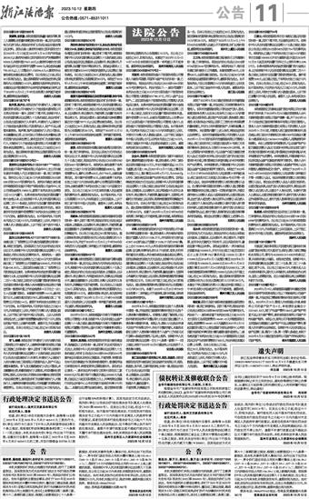 许晖:本院受理的原告杭州远升科技有限公司与被告许晖的追偿权纠纷一案,原告请求:1、判令被告向原告偿还代偿款人民币211538.27元,并向原告支付违约金42307.65(违约金以代偿款211538.27元的20%计算),以上合计253845.92元;2、判令原告有权被告所属车辆(品牌:宝马牌;车牌号码:浙E2L770)拍卖、变卖、折价所得价款优先受偿;3、判令被告承担本案全部诉讼费用。因用法律规定的其他方式无法送达,依照《中华人民共和国民事诉讼法》第九十五条之规定,依法向你公告送达起诉状副本、证据副本、应诉通知书、诉讼风险提示书、权利义务告知书、举证通知书、开庭传票、廉政监督卡、互联网公布裁判文书的规定、诉讼须知、简易转普通程序民事裁定书等诉讼文书。自本公告刊登之日起,经过30日即视为送达。提出答辩状期限和举证期限分别为公告期满后15日内和30日内。本案于:2023年12月22日9时00分在本院第十二审判庭公开开庭审理,届时未到庭,本院将依法缺席审理判决。 湖州市南浔区人民法院