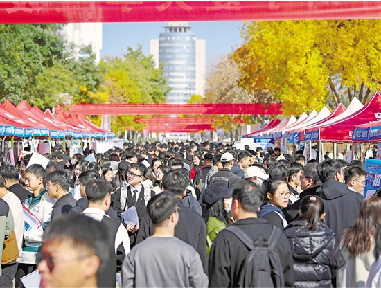 | 10月21日,2023年全国大中城市秋季巡回招聘“银川站”活动在宁夏大学怀远校区金波湖畔举行。本次招聘会共有来自北京、江苏、山东、广西、宁夏等地200余家用人单位参加,提供新材料、数字信息、清洁能源、机械制造等行业的6000余个岗位,吸引近万名高校学生前来求职。 新华社记者 冯开华 摄 |