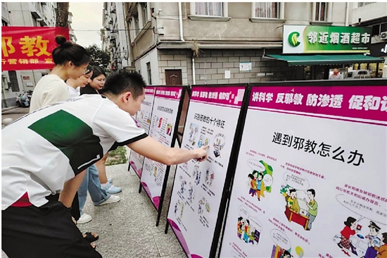 日前,金华开发区西关街道组织党员干部和志愿者走进五里亭社区,开展“普及反邪知识 增强防邪意识”警示教育讲座。西关派出所民警通过案例,向居民介绍了反邪教相关知识,耐心解答居民疑问,帮大家认清邪教危害,进一步提高识邪、防邪、拒邪能力。