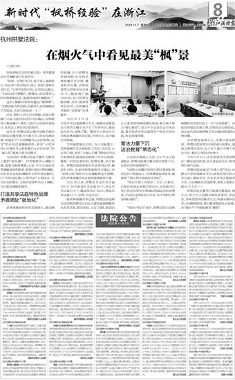 浙江法治报 新时代“枫桥经验”在浙江 00008 在烟火气中看见最美“枫”景 2023-11-07 浙江法治报2023-11-0700006;26425249;26425271|;26425276| 2 2023年11月07日 星期二