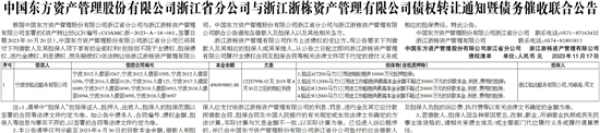 中国东方资产管理股份有限公司浙江省分公司与浙江浙栋资产管理有限公司债权转让通知暨债务催收联合公告