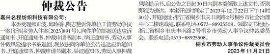 本委受理熊正波、邱玲香、陶志艳诉你单位工资劳动争议一案(浙桐乡劳人仲案〔2023〕891号),向你单位邮寄送达应诉通知书、开庭通知书、仲裁申请书副本、举证通知书、劳动人事仲裁风险提示书被退回、现依法向你单位公告送达应诉通知书、开庭通知书、仲裁申请书副本、举证通知书、劳动人事仲裁风险提示书,自公告之日起30日内到本委领取上述文书,否则即视为送达。本案开庭时间定于2023年12月22日下午14时30分,开庭地址:浙江省桐乡市庆丰南路2号桐乡市社会治理中心二楼速裁庭,联系电话:0573-88925508。领取文书地址:浙江省桐乡市庆丰南路2号桐乡市劳动人事争议仲裁委员会。联系电话:0573-88925508。