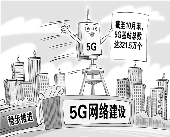 工业和信息化部近日发布数据显示,我国5G网络建设稳步推进,截至10月末,5G基站总数达321.5万个,占移动基站总数的28.1%,三家基础电信企业5G移动电话用户达7.54亿户。