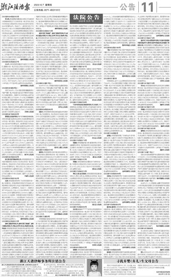 更正:本报2023年12月1日第10版法院公告栏中,湖州市南浔区人民法院(2023)浙0503民初3704号,公告送达文书应增加“保全裁定书”,特此更正。