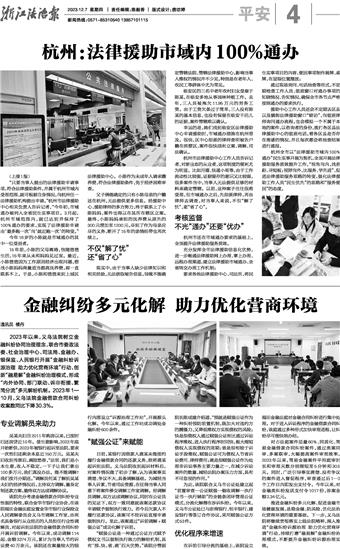 杭州市还在市域通办要求的基础上,全面提升法律援助服务质效。