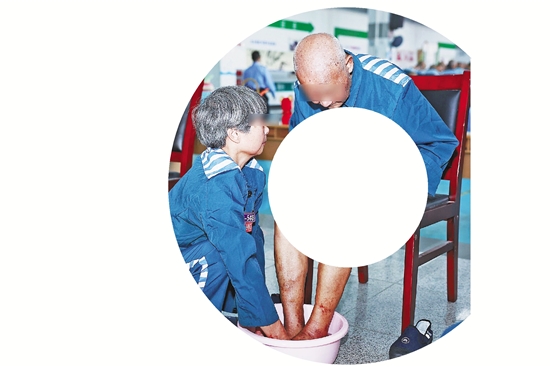 近日,在浙江省乔司监狱举办的一场亲情帮教活动上,身穿囚服、头发花白的女犯心远(化名)蹲在同样穿着囚服的父亲老源(化名)跟前,双手轻轻地给父亲按揉着双脚,心远的泪水在眼眶里打转,而87岁的老源早已老泪纵横……
