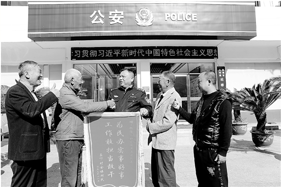 近日,杜桥镇娄下村78岁村民郑永吴和村里另外几位老人一起,将一面锦旗送到临海市公安局杜桥派出所,表达对驻村指导员兼第一书记、民警王正忠的感谢之意。老人们说,王正忠今年3月到任后,与村民们想在一起、干在一起,解开了村里欠款催收、新村改造等诸多“死结”,“大家都在念叨他的好”。