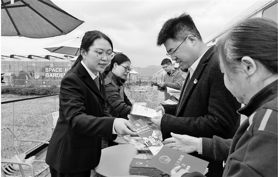 近日,宁波海曙法院古林巡回审判点联合古林司法所,在茂新村开展宪法日宣传活动。现场,法庭干警发放各类法律法规宣传手册,向过往群众详细解读宪法是什么、国家宪法日的意义,教育引导群众在日常生活中自觉养成尊法、学法、守法、用法的好习惯。 通讯员 葛艳君