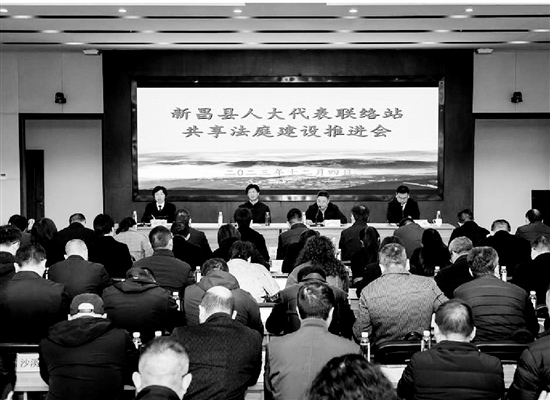 12月4日,新昌县委政法委牵头组织新昌县人大常委会办公室与新昌法院共同召开人大代表联络站共享法庭推进会,在全县范围内落实人大代表联络站共享法庭建设。