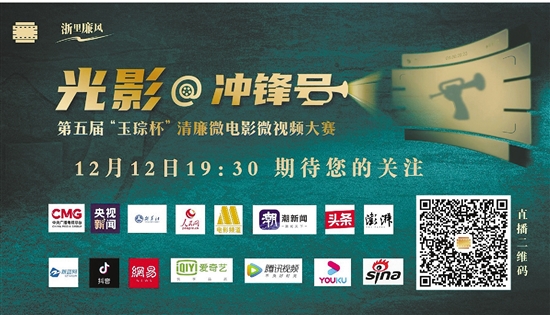本报讯 经过近8个月的紧张筹备、专家评审团的三轮评审,“光影@冲锋号”第五届“玉琮杯”清廉微电影微视频大赛终于迎来颁奖时刻——12月12日晚,杭州大剧院,60部微电影、60部微视频将问鼎125个奖项。