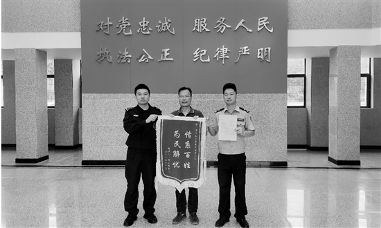 近日,在上海工作的开化籍市民刘先生专程赶到开化县公安局,给安全防控部民警吴琛送上一面锦旗,“感谢你多次接送我83岁老母亲就医”。“有困难,随时找我”,这是吴琛参加安全防控部党支部“党员先锋岗”的一句承诺,也是开化县公安局安全防控部党支部开展“凝聚微贡献·为民办实事”活动的缩影。 通讯员 汪振华 摄