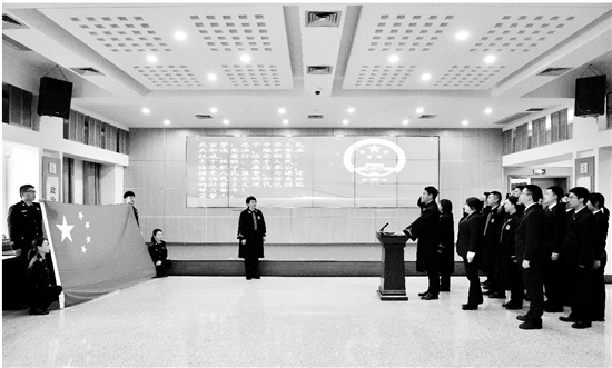 近日,龙泉法院举行宪法宣誓仪式,新任职的15名干警面对国旗庄严宣誓,表达恪尽职守、司法为民、绝对忠诚的坚定决心。 通讯员 潘一欢