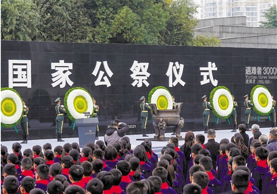 当日是第十个南京大屠杀死难者国家公祭日,南京大屠杀死难者国家公祭仪式在侵华日军南京大屠杀遇难同胞纪念馆举行。